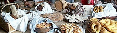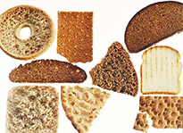 complet: pains d'orge, Graham et d'avoine, petits pains ronds, pains d'orge sans levain aux formes qui varient d'une localité à