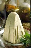 4. chemiser un moule à Pasha d'une gaze fine; mettre le mélange; laisser égoutter en pressant de temps en temps pendant 2 ou 3 jours; tenir dans un endroit frais ou dans le panier à fruits dans le bas du réfrigérateur;
