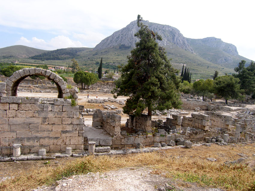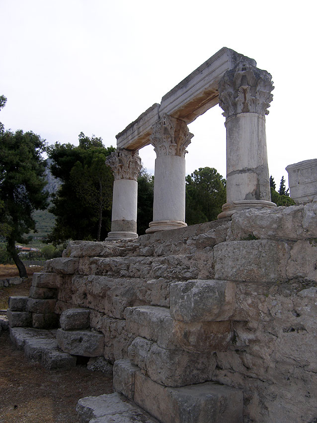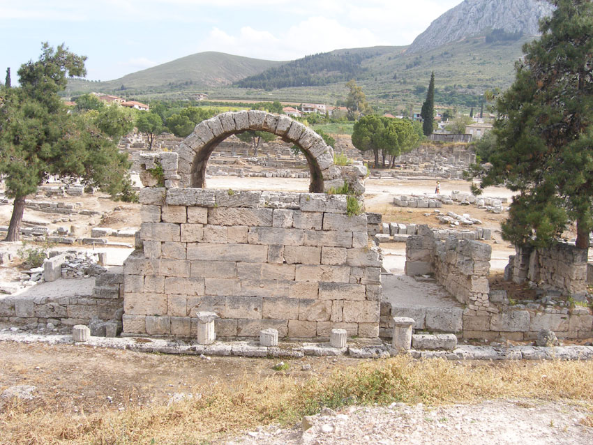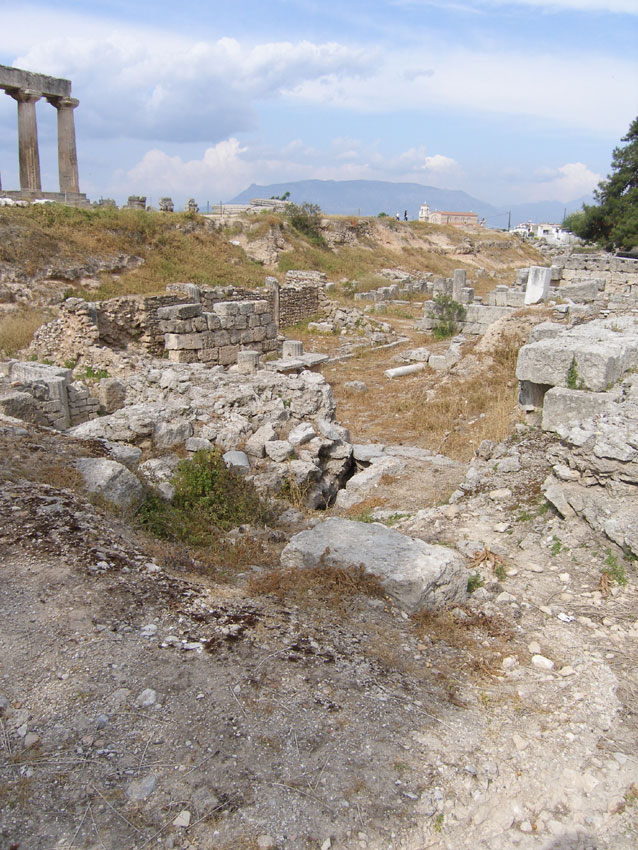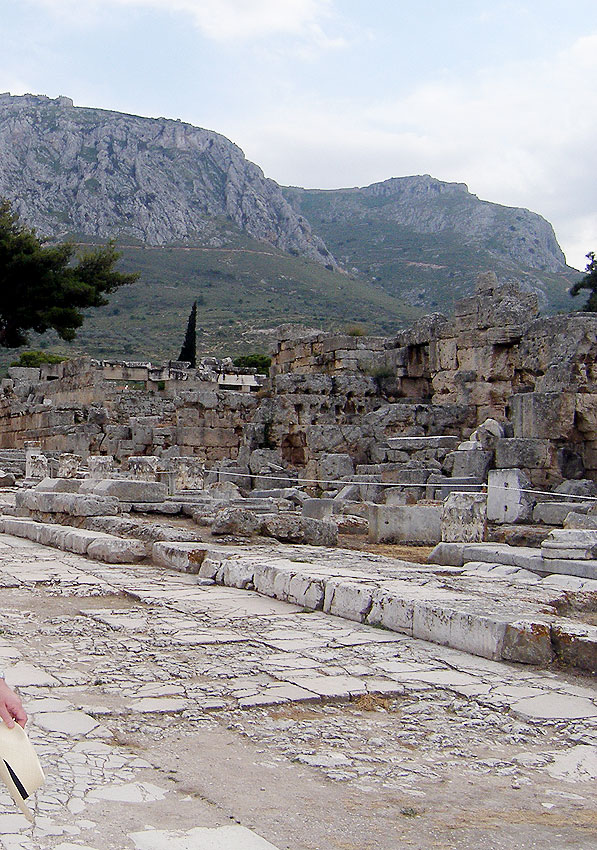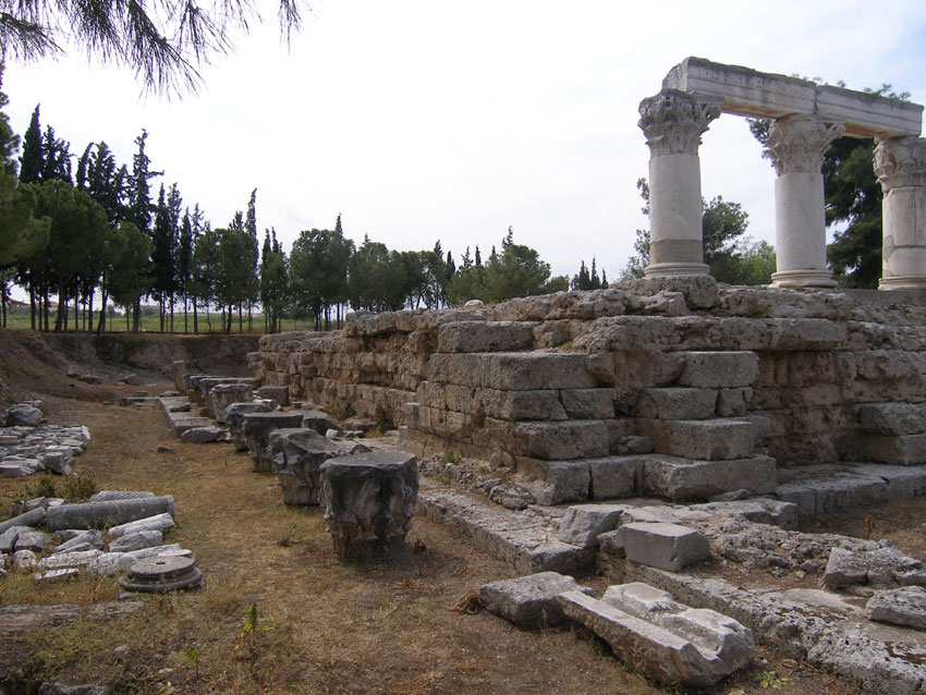La rue de Lechaion c'est une voie dallée de marbre reliait Corinthe au port de Lechaion.