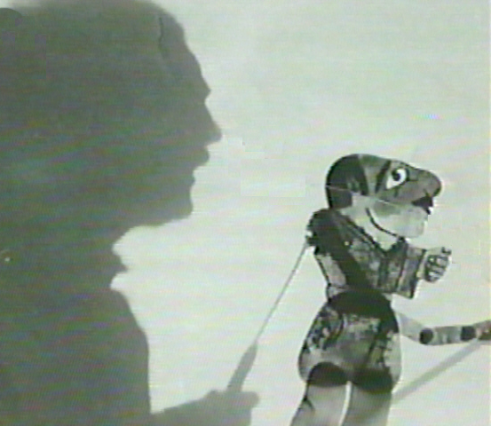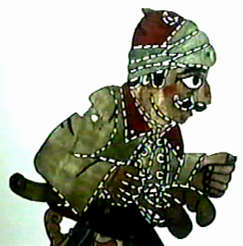 silhouette de Karakgioz en imitant sa voie et en racontant les mêmes