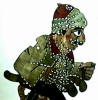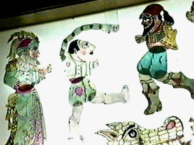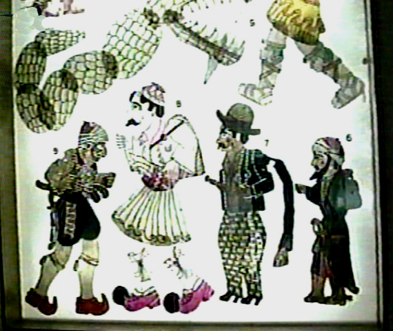 théatre, son décor fait lui même ses marionnettes dans du cuir d 'ânes