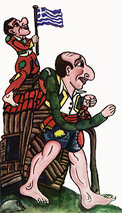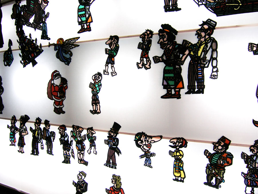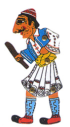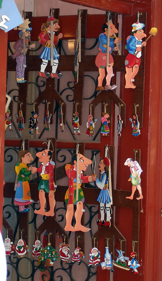 la petite histoire : Le personnage en carton, du théâtre d’ombres grec, fut utilisé comme premier support publicitaire. Il invitait les spectateurs avec la malice qui le caractérise, à consommer tout ce que la Grèce de l’époque du roi Othon avait à offrir de nouveau et de meilleur.
