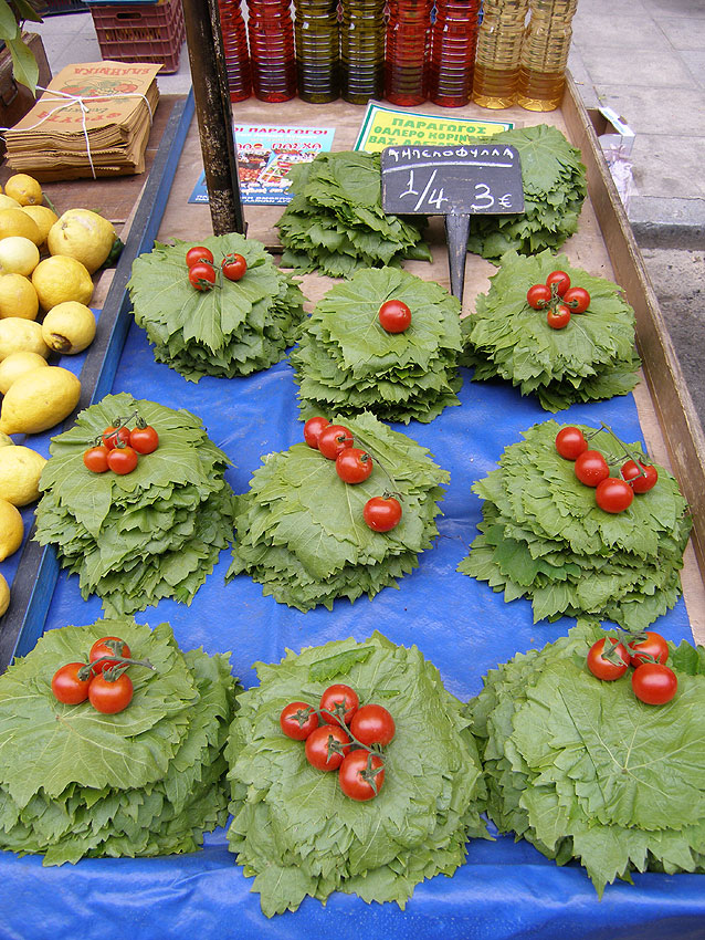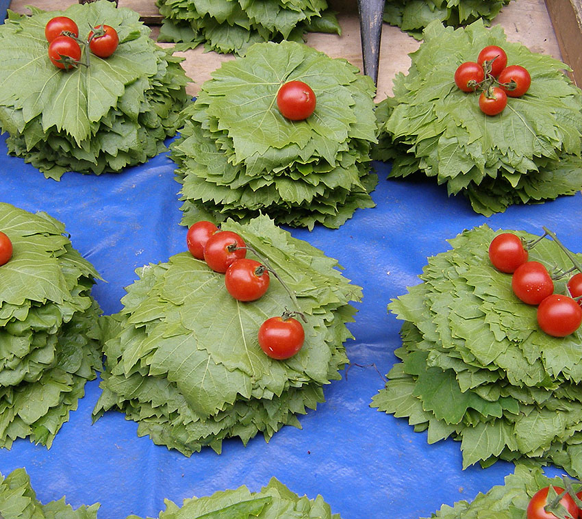 Feuilles de vigne qui serviront à la préparation des Dolmades.