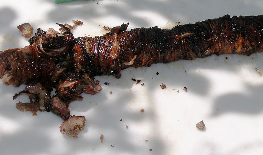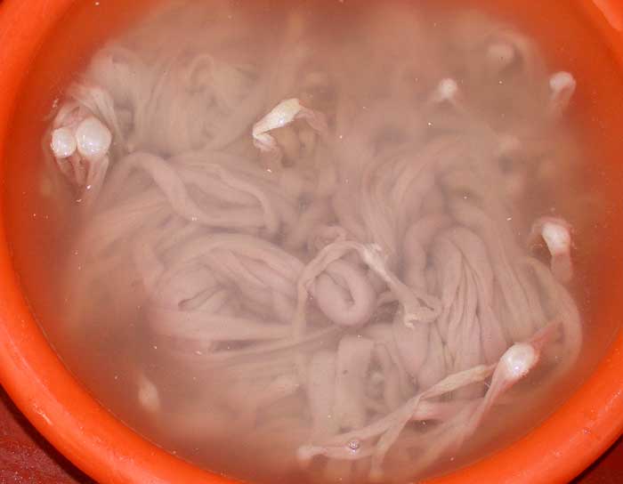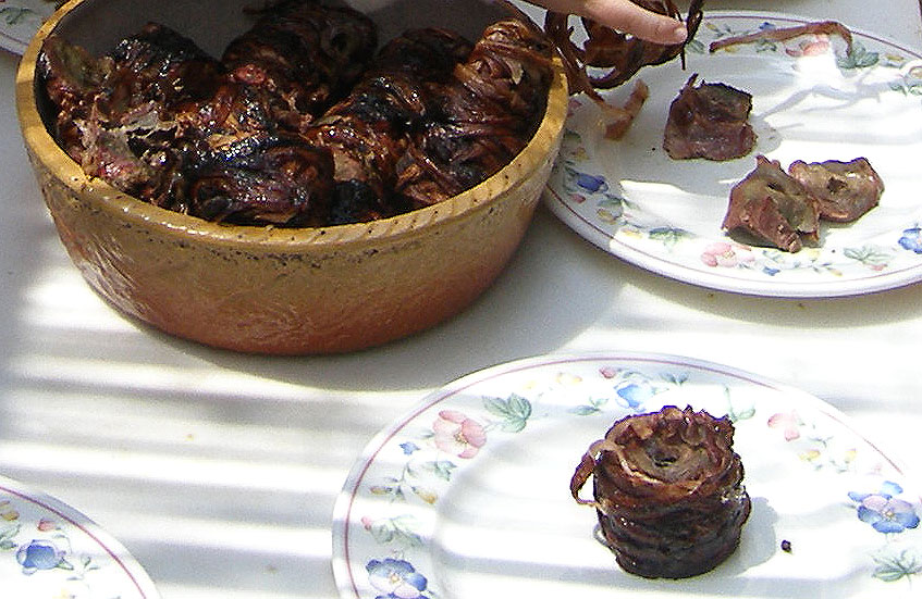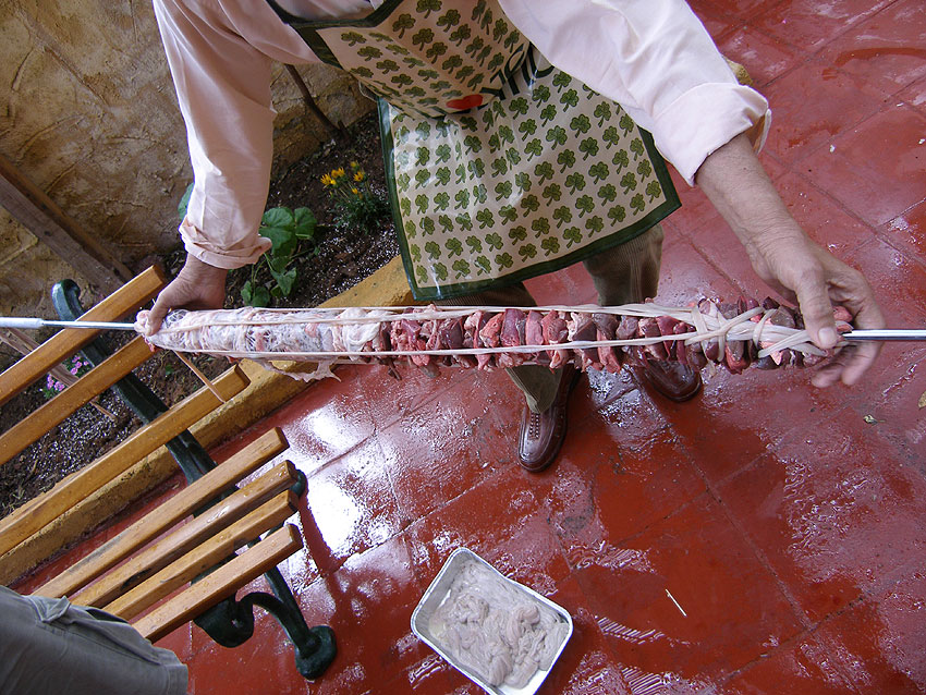 des intestins bien nettoyés. On sale et poivre puis on entoure la