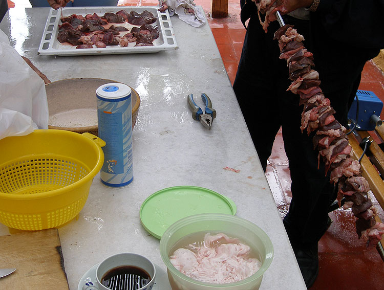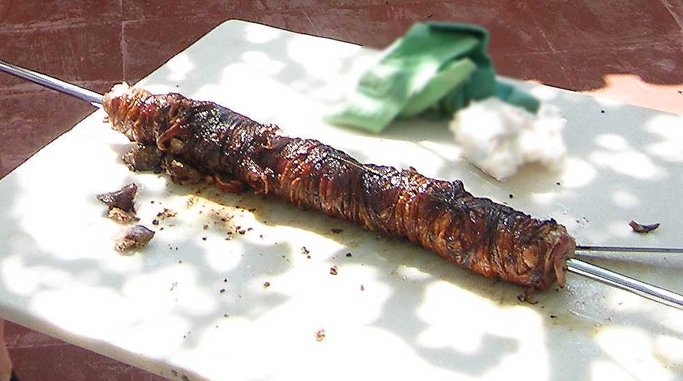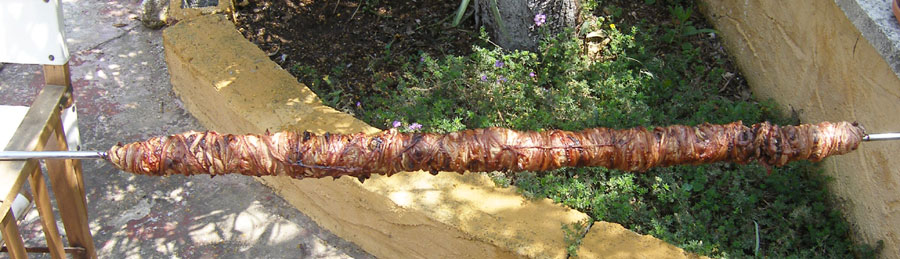 brochette de crépine et d'intestins et c'est prêt à cuire.