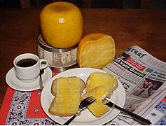 Pour être commercialisés, le gouda et l'édam sont grattés et recouvert d'un film paraffiné rouge (Edam) ou jaune (gouda). La mimolette, dont la pâte a été colorée en orange avec des caroténoïdes (rocou), est brossée, puis paraffinée.