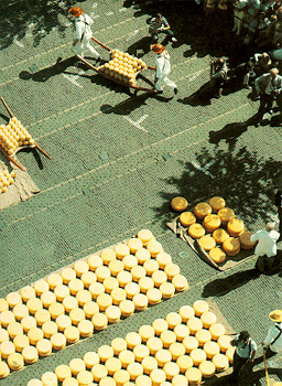 Le fromage arrivait souvent par bateaux le jeudi et était empilé par des poseurs de fromages sur le marché.