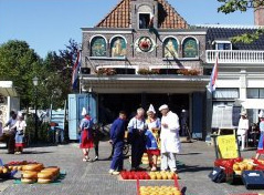 Le marché s'ouvre chaque Vendredi à dix heures; les piles des fameuses boules d'Edam attendent les acheteurs.
