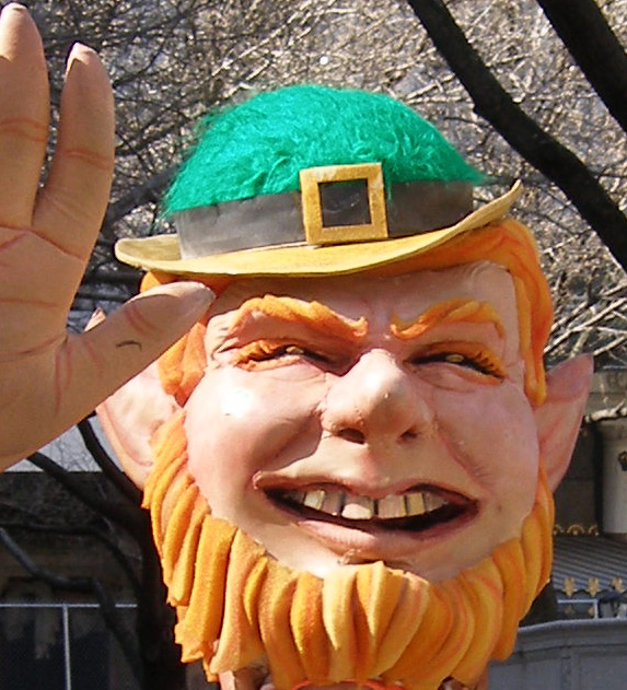 Les "Leprechauns" sont un autre symbole de la saint Patrick : ce nom est tiré de l'ancien nom irlandais "lechorpan" qui signifie "petit homme" (ils mesuraient 1 pied, soit environ 33 centimètres). C'est une race mythique d'elfes facétieux qui