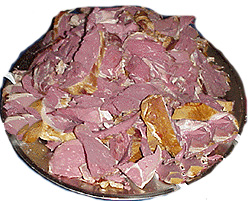 Viande salée. A faire bouillir pendant une heure et demie, sans sel. Se