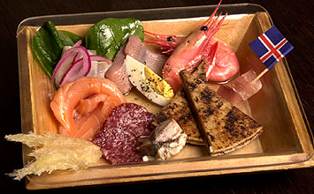 séché, de galettes de seigle (flatbrauð), de requin et de toutes