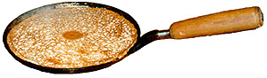 en fonte. Le fond épais est nécessaire, puisque les crêpes doivent être faites rapidement à une relativement haute température