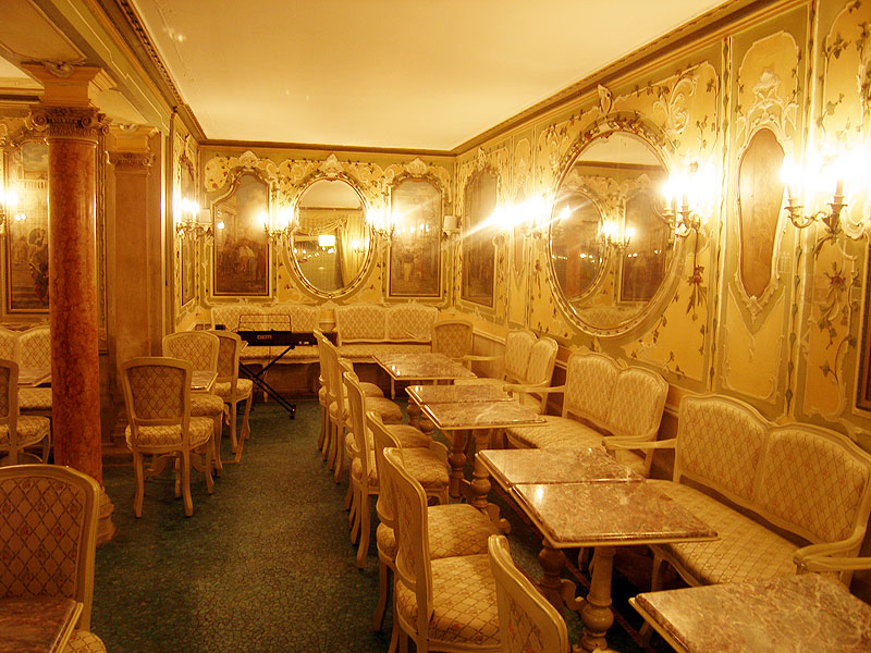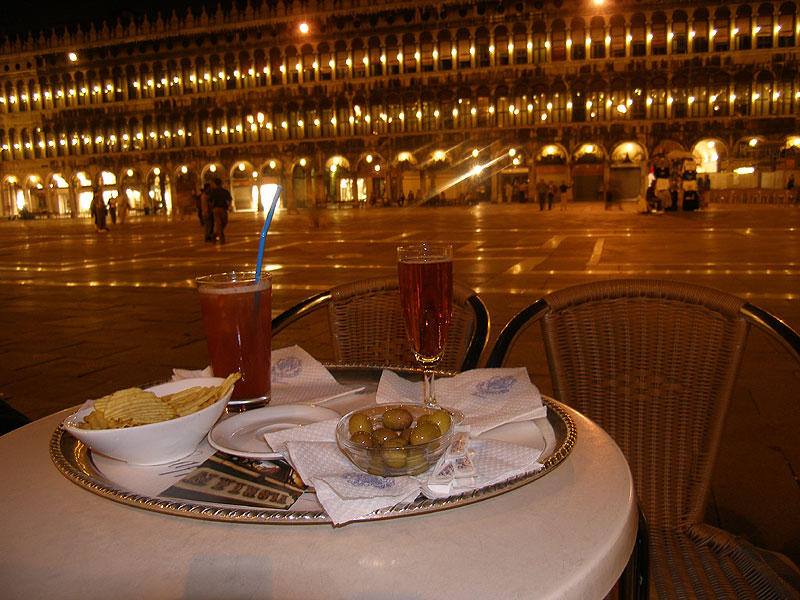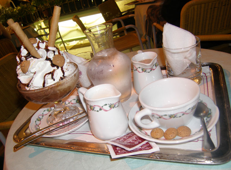 Prendre un petit chocolat devant la terrasse du café Quadri au son de la musique des orchestres.