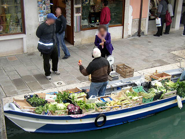Les marchands vendent leur production à bord de leur barque.