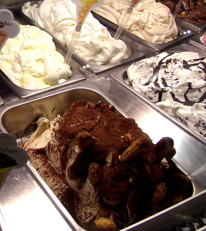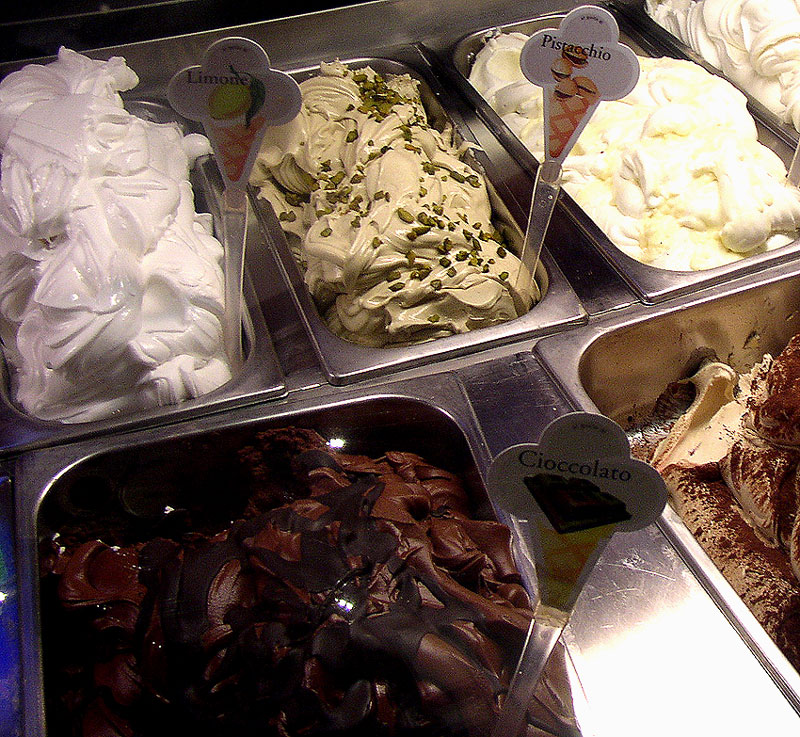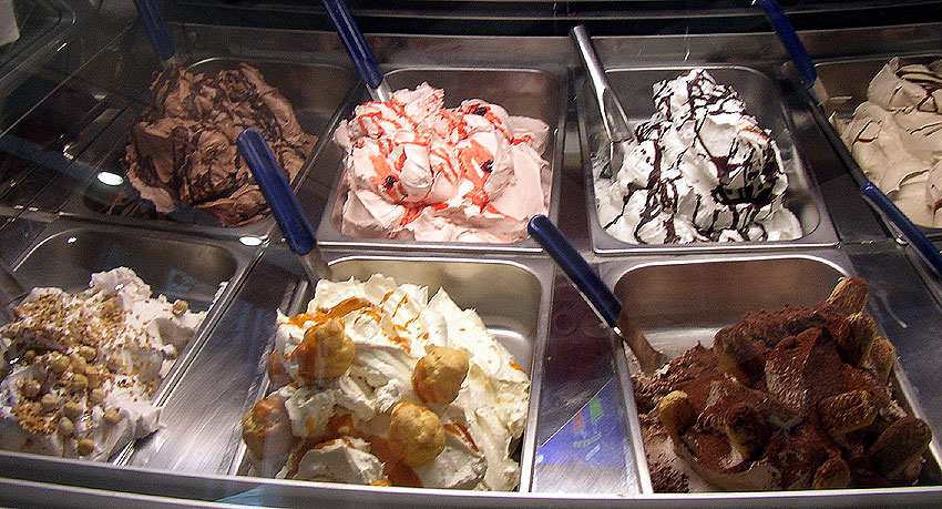 Gelato ou glaces à différents parfums