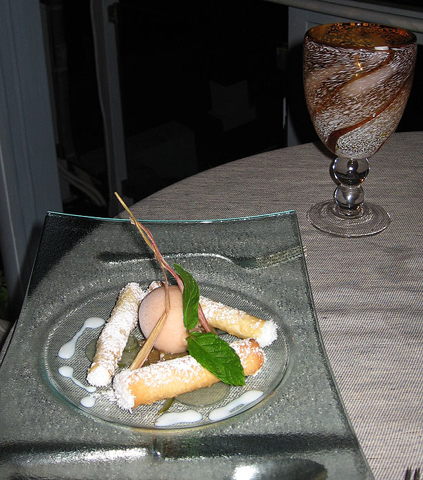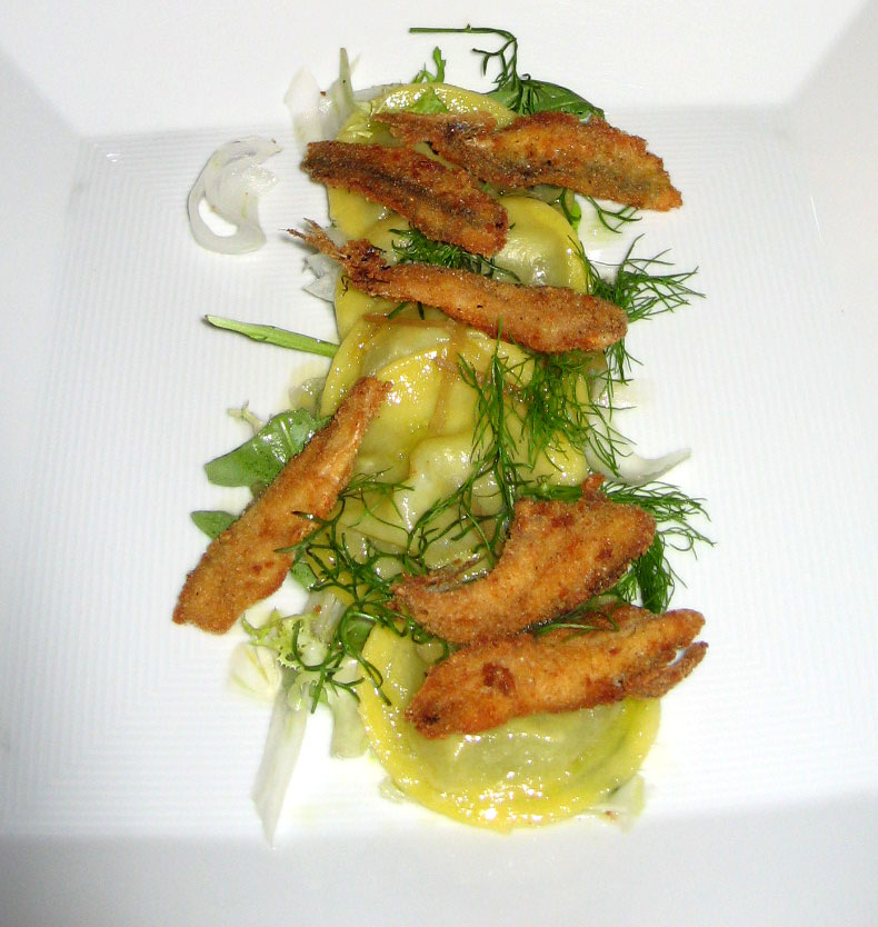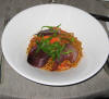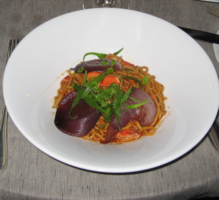 Tagliolini au homard à la pomme verte et aux oignons rouges.