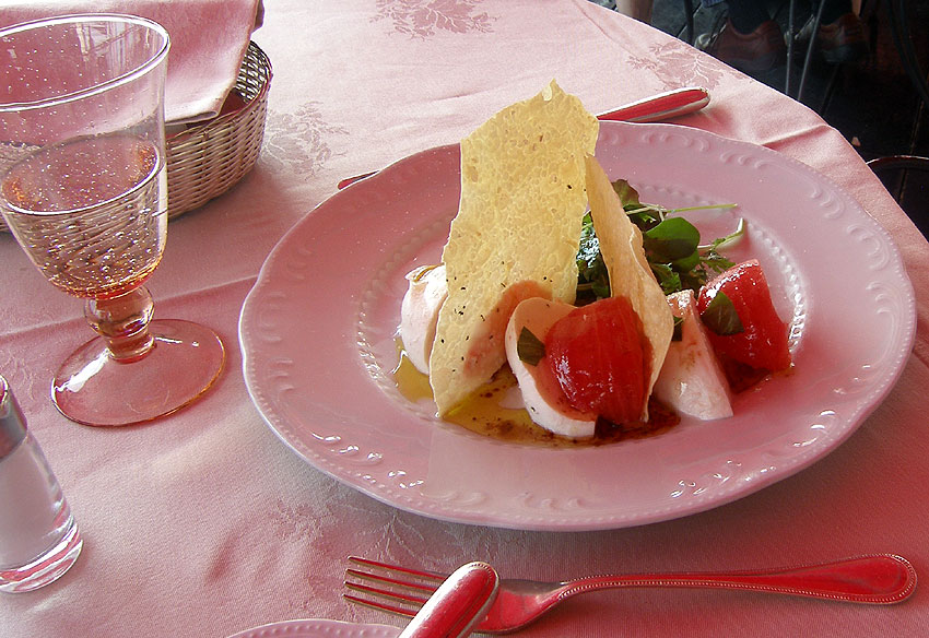 Carpaccio de boeuf et mozarella à l'huile de truffe blanche.