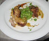 Perdrix braisée avec semoule et cresson et noix de coco râpée.