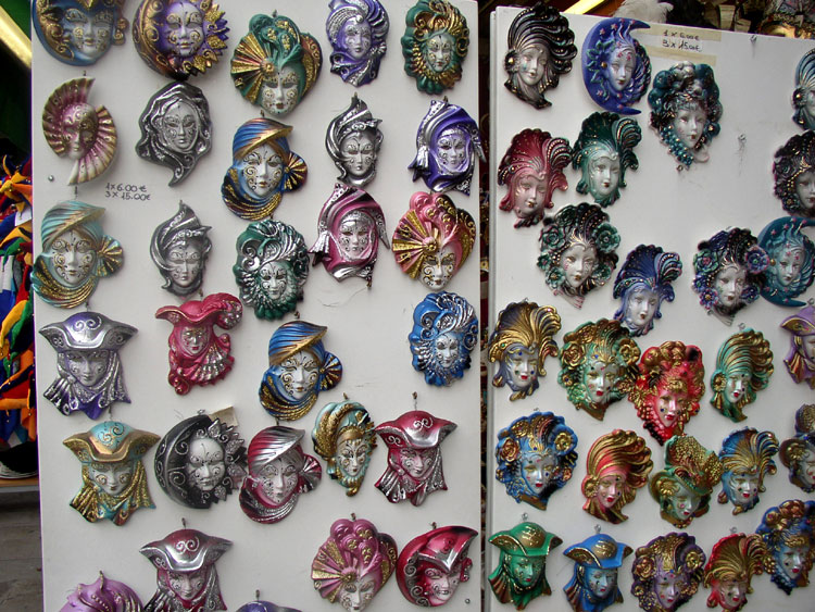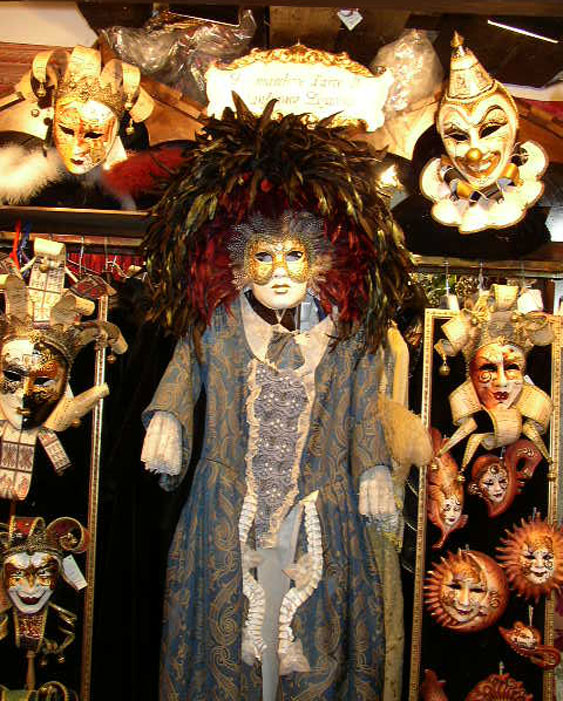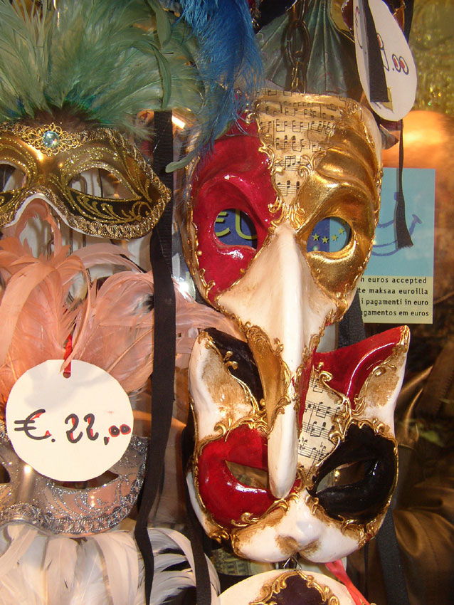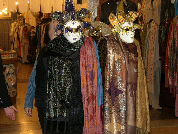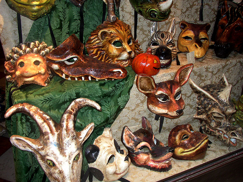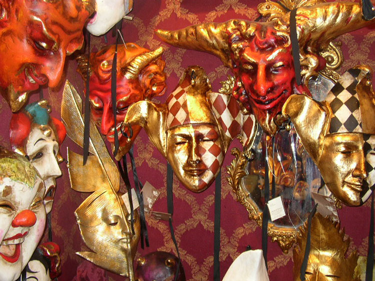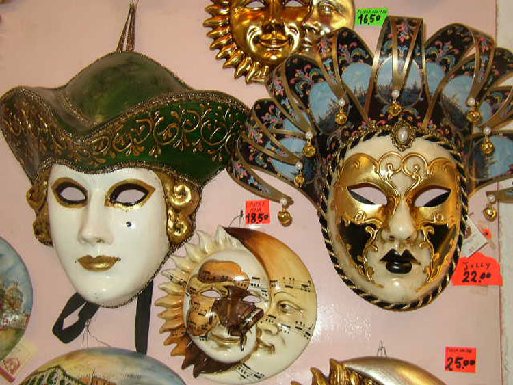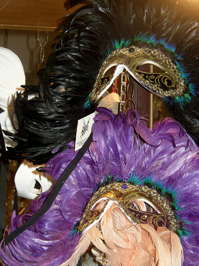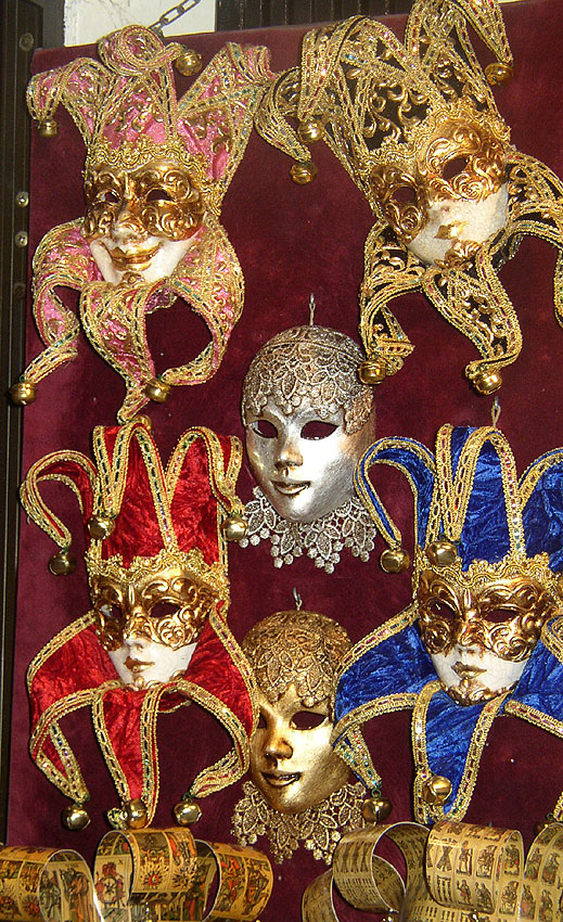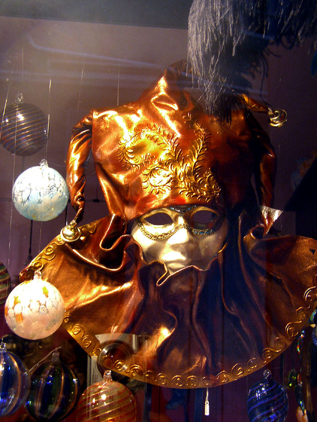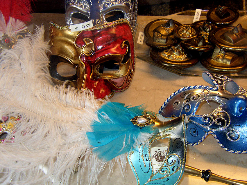 Photos des masques et vitrines à Venise