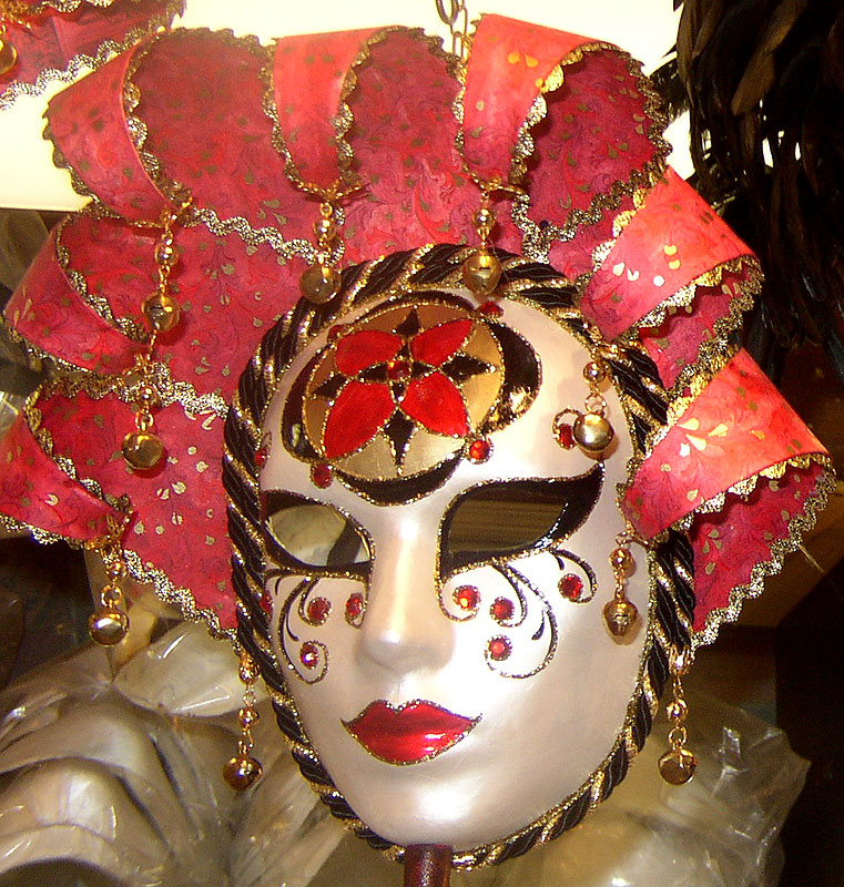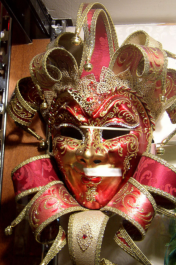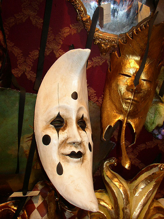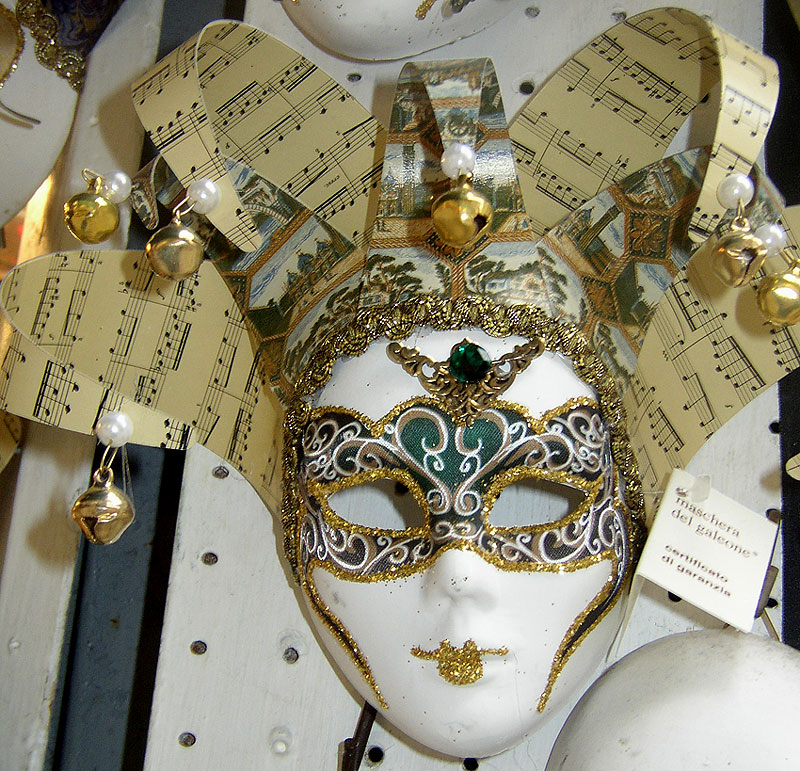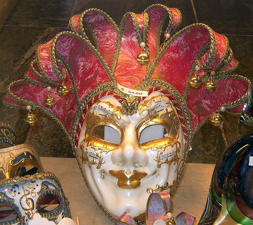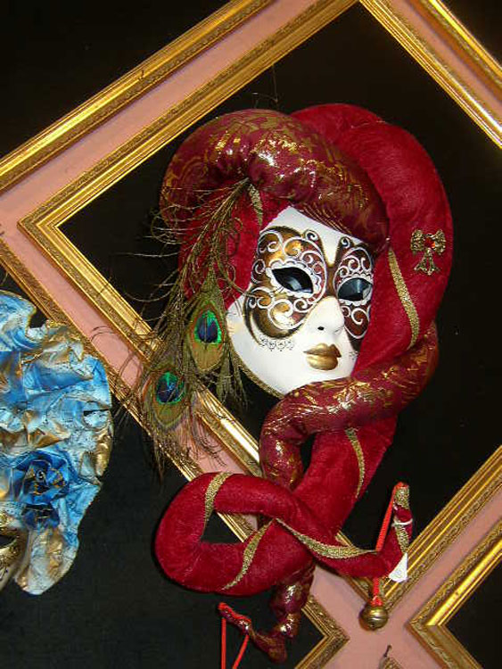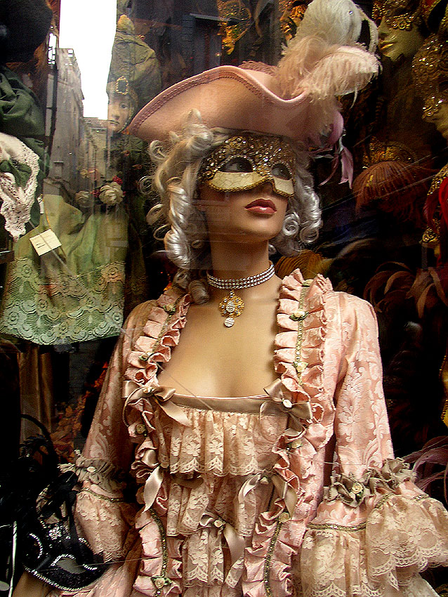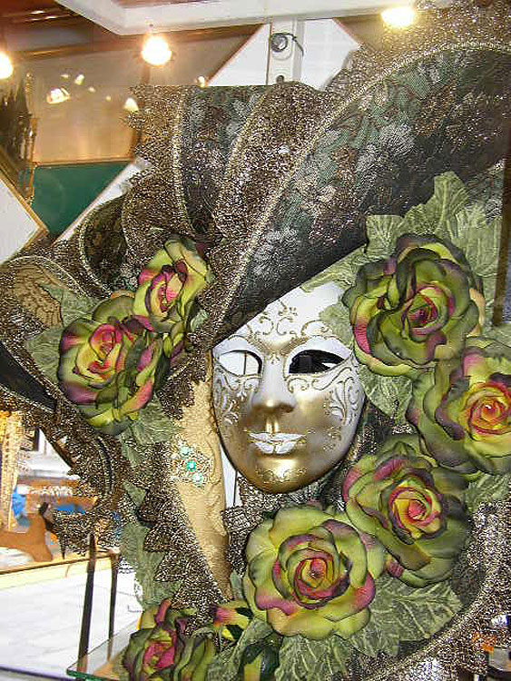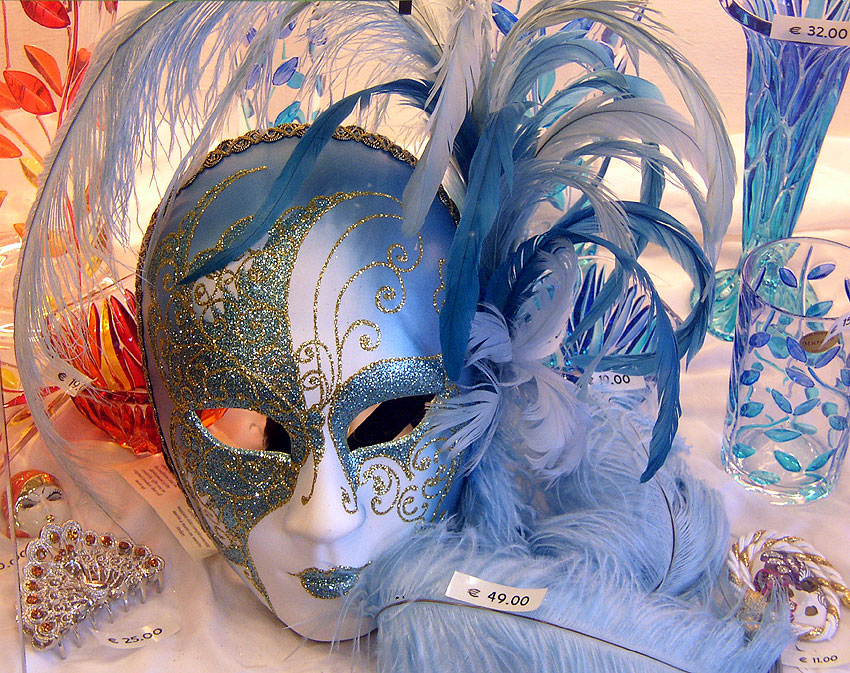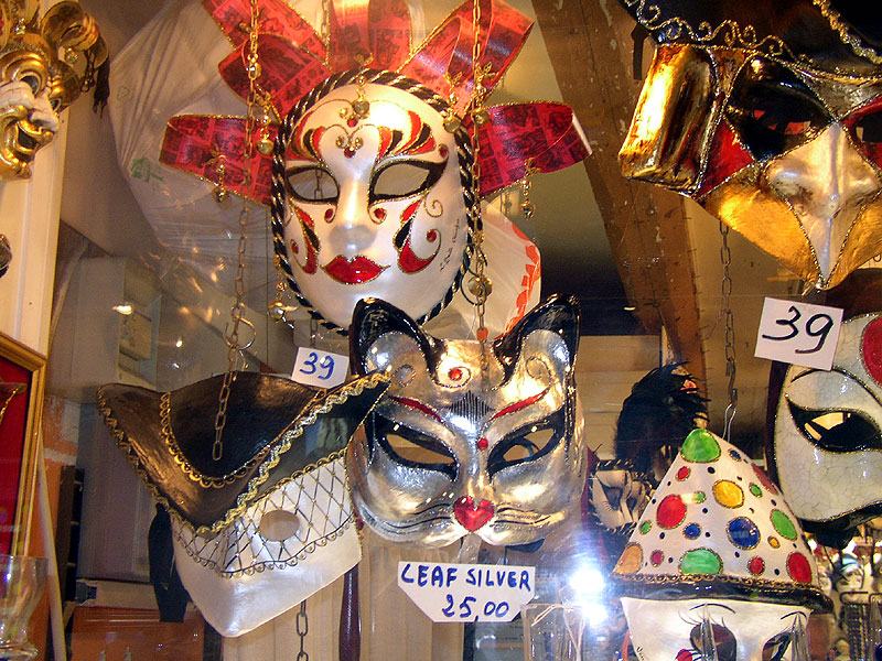 Photos des masques et vitrines à Venise
