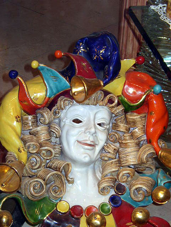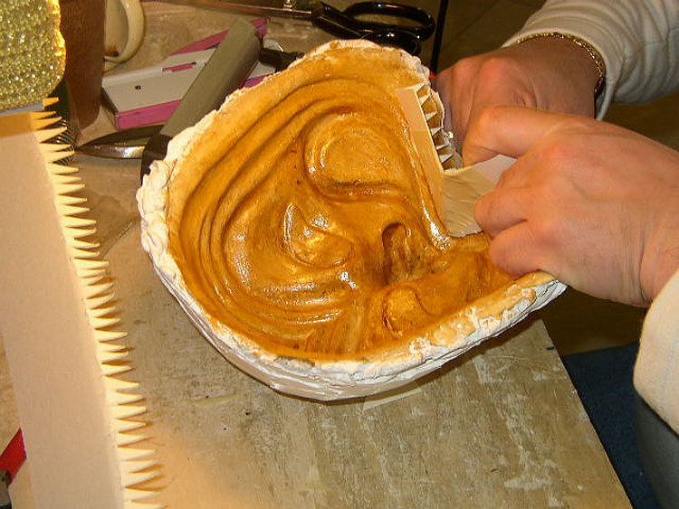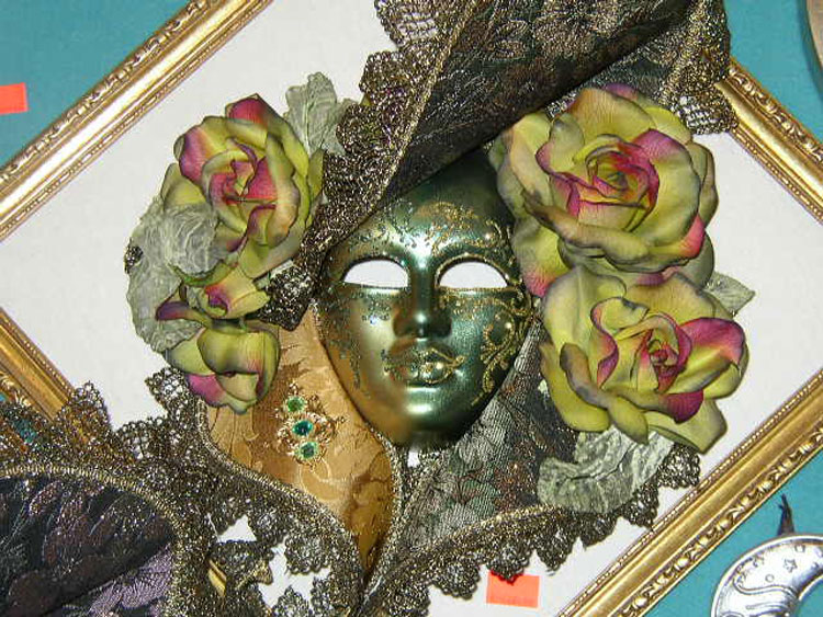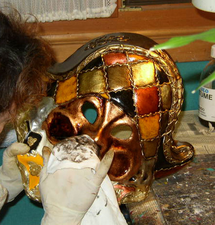 Dernière retouche sur un magnifique masque d'Arlequin.