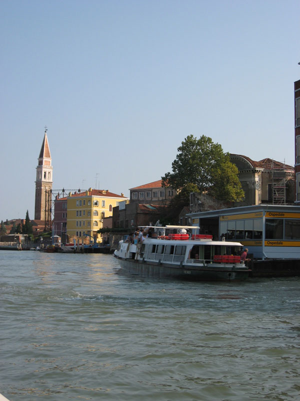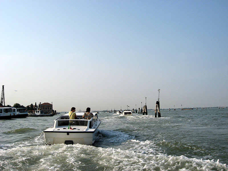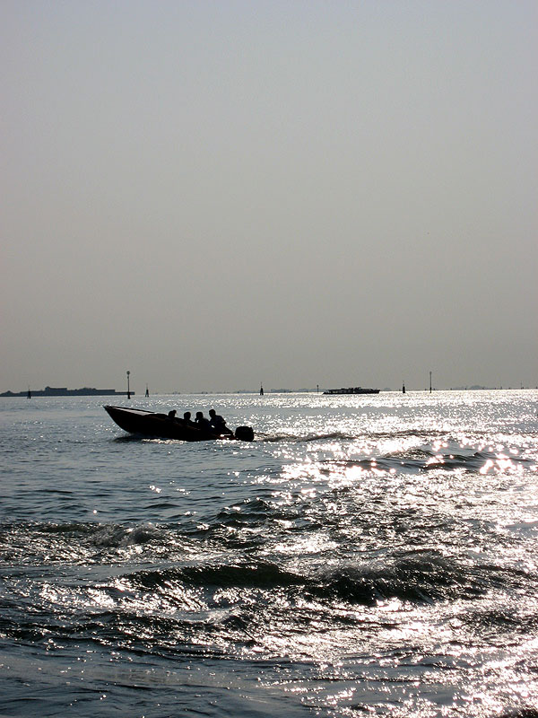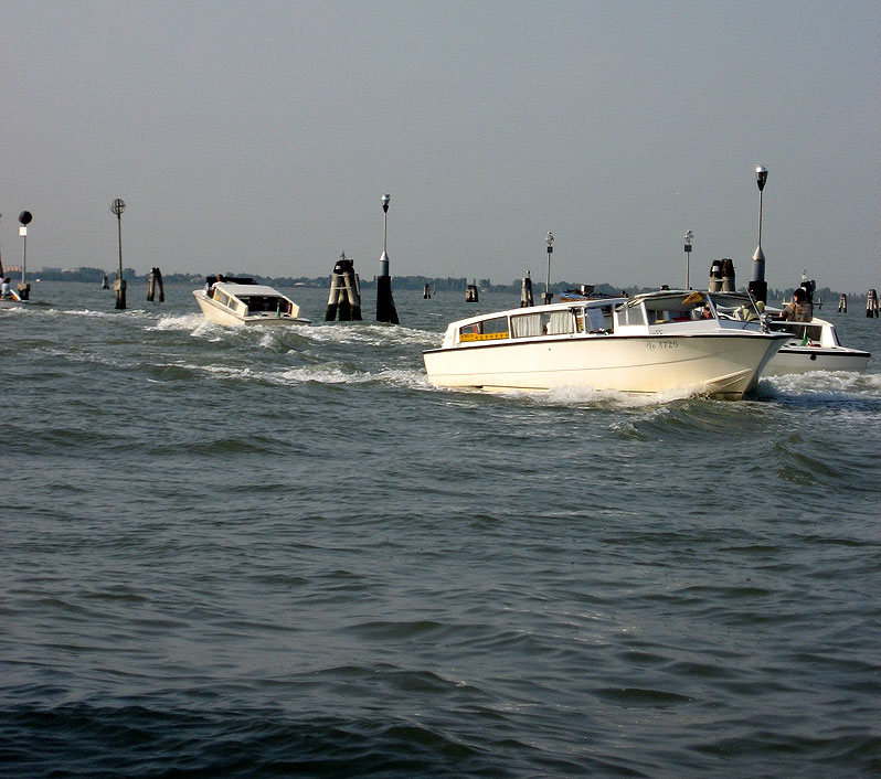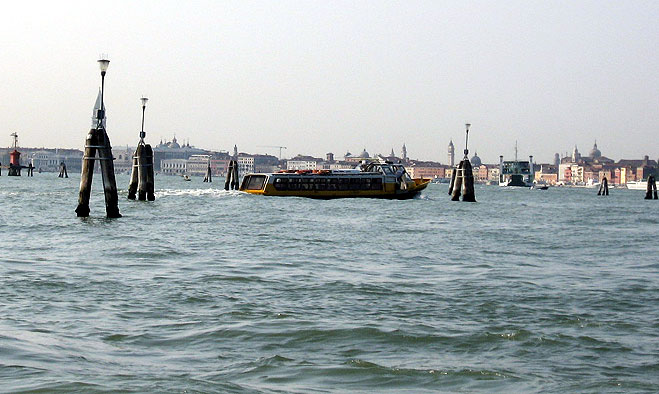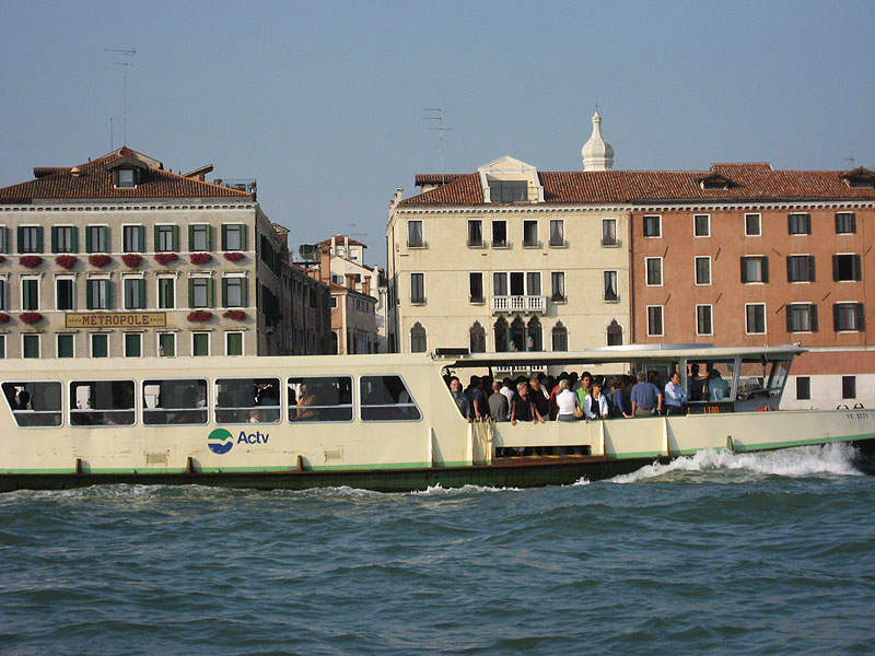 un bateau navette appelé motoscafo jusqu 'au centre de Venise. Nous
