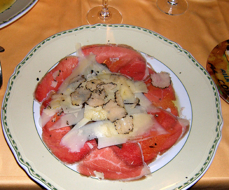 Carpaccio de boeuf et parmesan et truffes blanches.