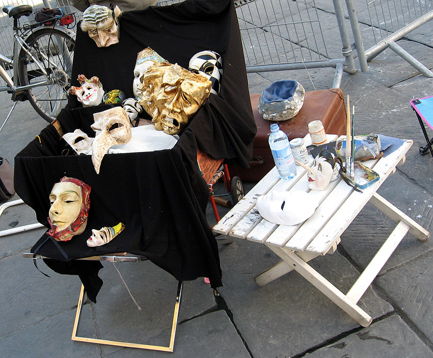 Photos des masques et vitrines à Venise