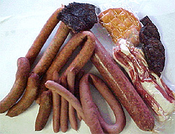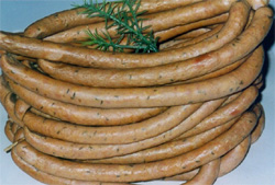 saucisses, de porc le plus souvent), ou de bœuf épicées, servies avec