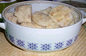 rassis, les knedliky sont cuites à l'eau puis coupées en rondelles.