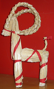 On ne connaît pas vraiment le pourquoi de la couleur rouge qui entoure la chèvre en paille certains disent que c est pour rappeler les couleurs de Noël.
