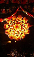 toutes sortes d'ornements . On place une gerbe de blé dans le jardin pour les oiseaux.