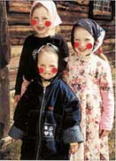 jupes longues et foulards couvrant leur tête. Ils se maquillent les lèvres et les joues