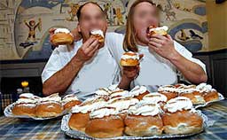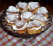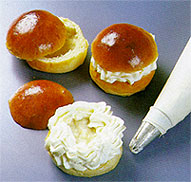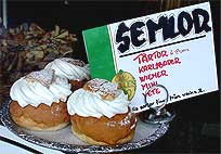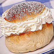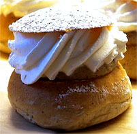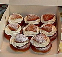 petits pains au lait remplies de crème fouettée et à la pâte d'amande. On appelle cette journée la journée des