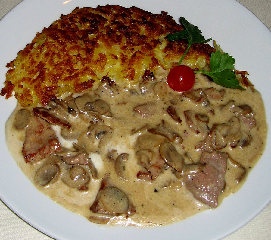 Zürcher geschnetzeltes ou émincé de veau aux champignons.