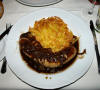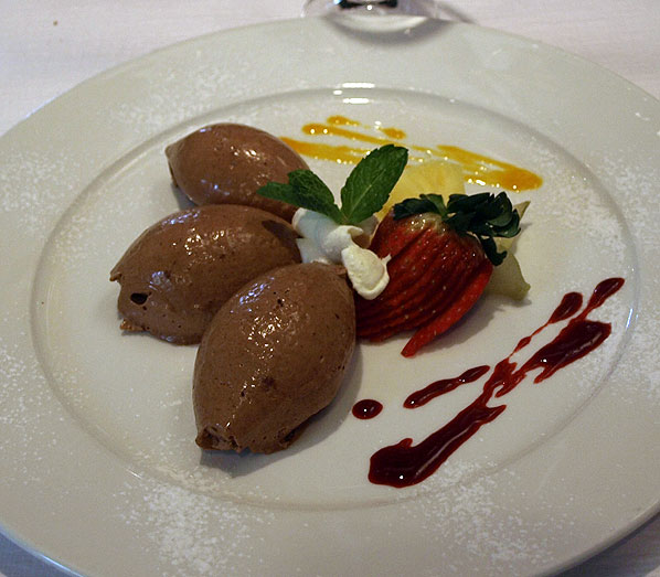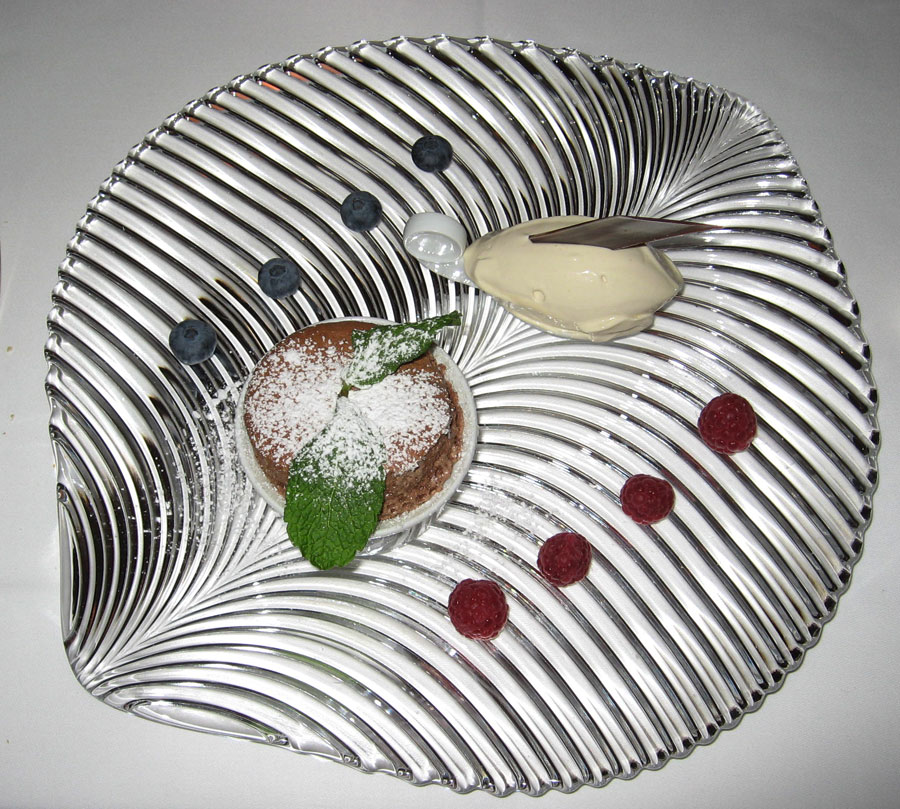 Soufflé au chocolat et glace à la vanille.