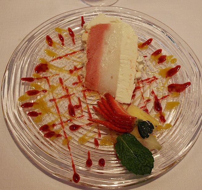 Meringue et coulis de fruits.
