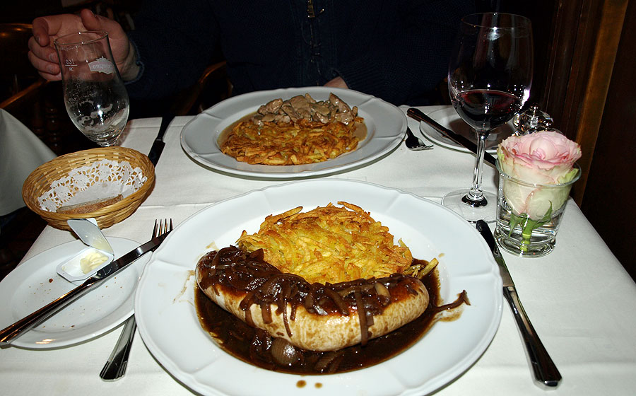 Kalbsbratwurst ou saucisse de veau et porc et Rösti
