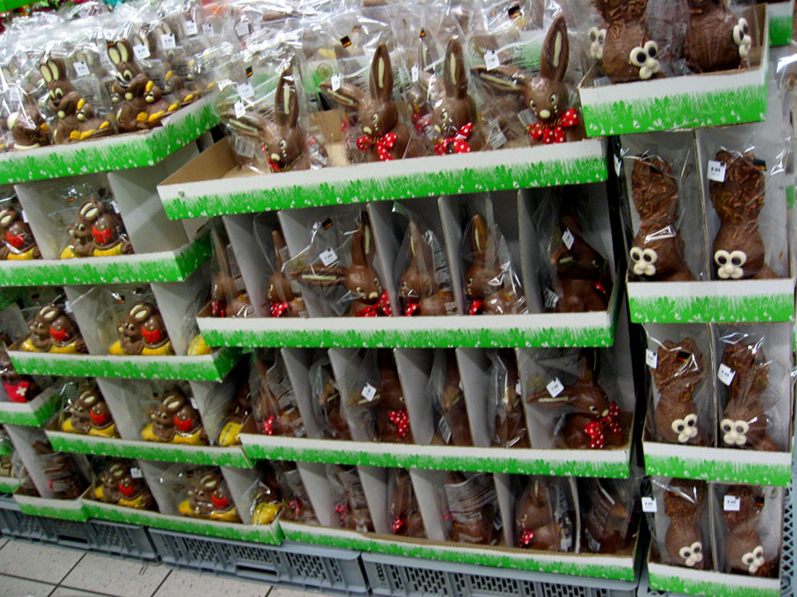 Les lapins ou lièvres en chocolat dans les rayons des magasins.