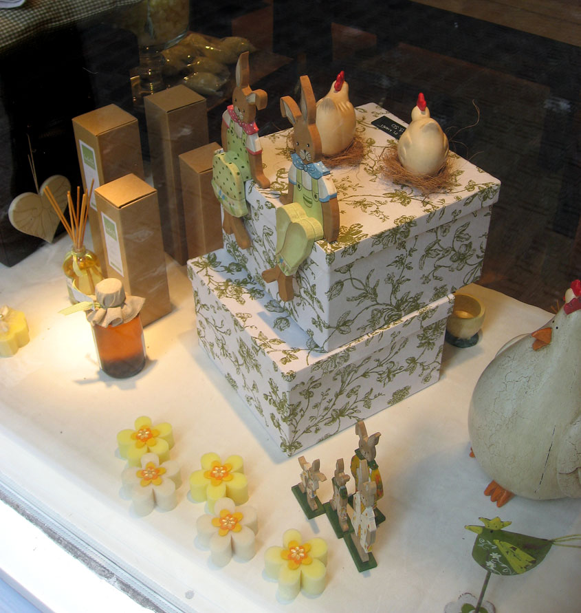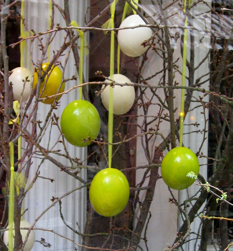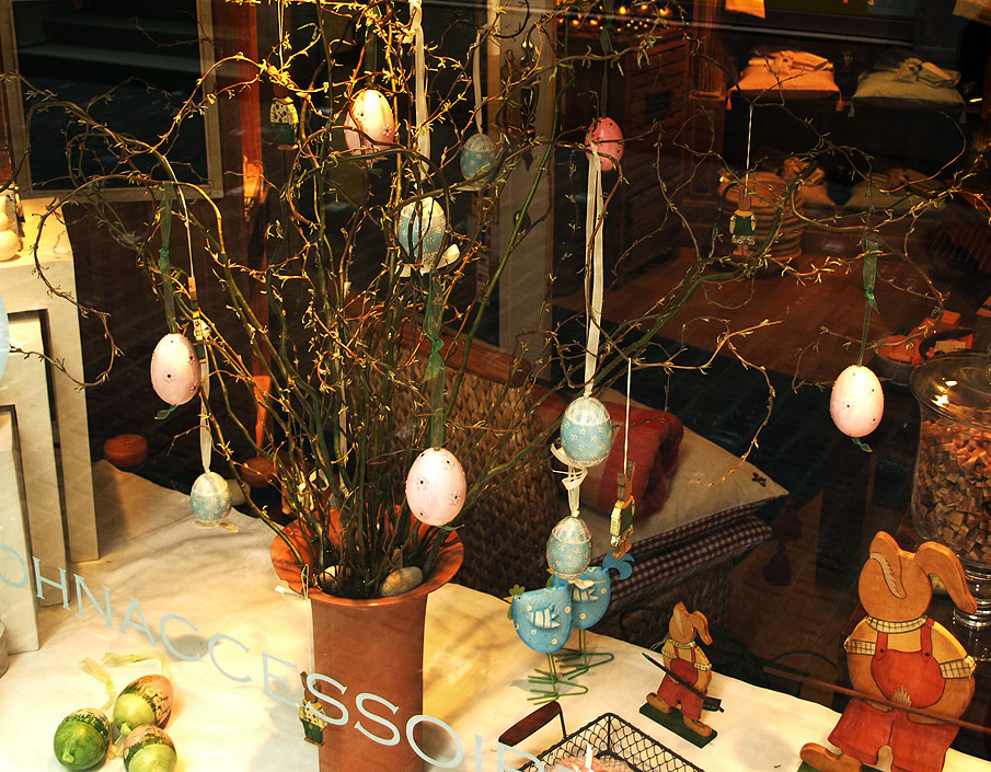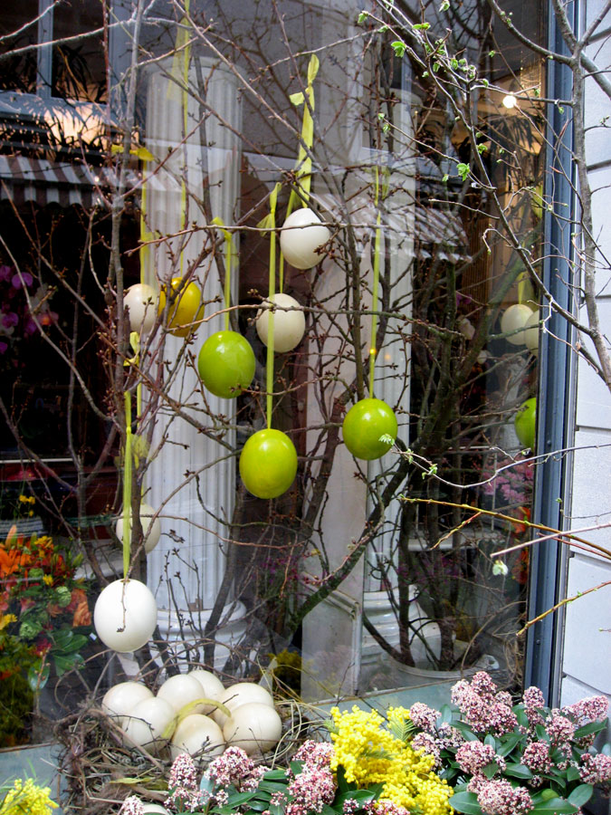 Les arbres à oeufs fleurissent les vitrines de tous les magasins et hotels.